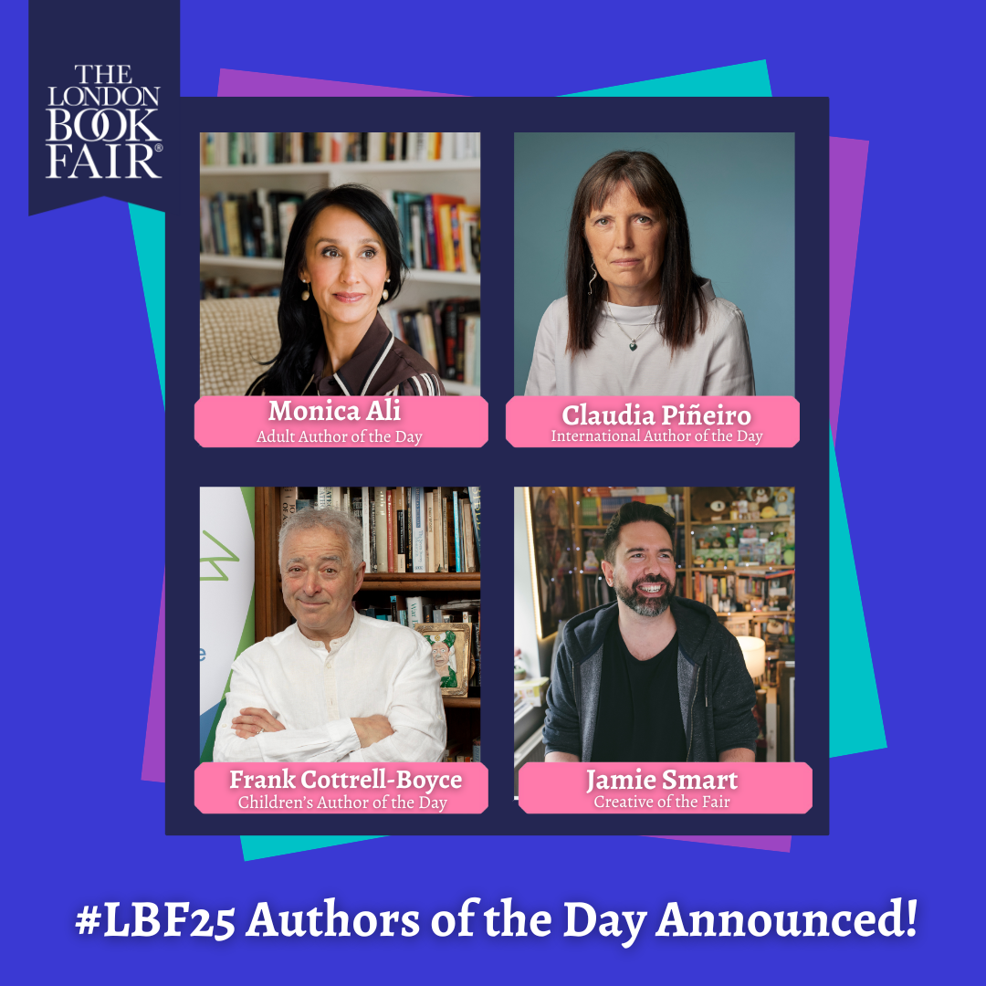 London, Wednesday 27 November 2024. The London Book Fair (LBF) has today revealed the Authors of the Day line-up for the 2025 Fair, which will feature: best-selling novelist and chair of judges for the Women’s Prize for Fiction 2024 Monica Ali as Adult Author of the Day; Argentine novelist and screenwriter Claudia Piñeiro, who was shortlisted for the International Booker Prize, as International Author of the Day; the current Waterstones Children’s Laureate (2024-2026) Frank Cottrell-Boyce as Children’s Author of the Day; and comics artist and British Book Awards winner Jamie Smart as the first ever Creative of the Fair.